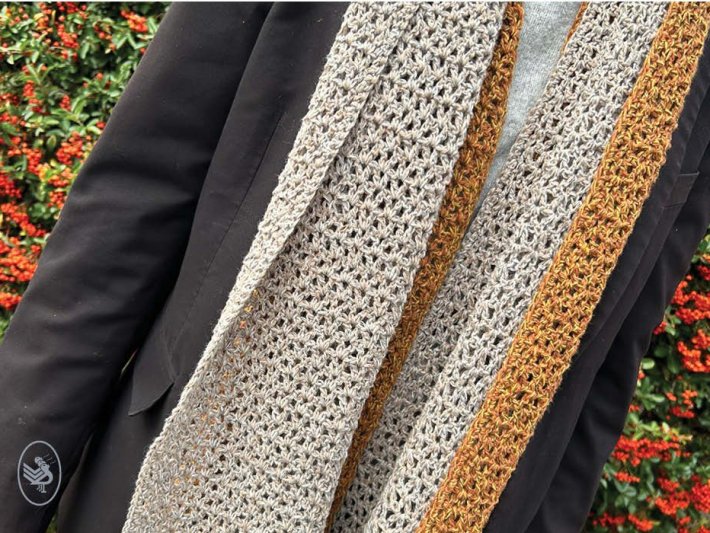 rope stitch, a beautifully open stitch suitable for beginners. When the scarf is almost finished, you crochet a round
