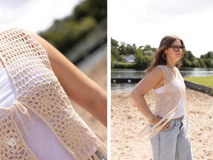 Diese Weste ist super schön, um sie über einer weiten Bluse oder einem Top zu stylen – perfekt für dein angesagtes Sommer-Outfit! Du kannst die Weste auch gut mit einer Jeans kombinieren, um deinem Outfit einen ganz neuen Look zu geben.