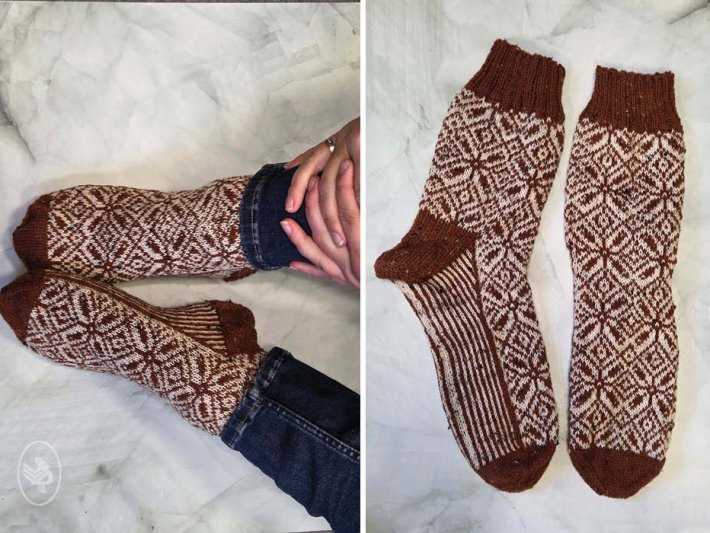 Een heerlijk warm paar sokken, speciaal voor koude winterdagen, maak je met twee kleuren Durable Soqs Tweed. Het patroontje lijkt op een bloem en je zult merken dat er ook een rand tevoorschijn komt met ruiten in diverse groottes. Een verrassend patroon dus, speciaal voor de gevorderde breister die van een leuke uitdaging houdt.