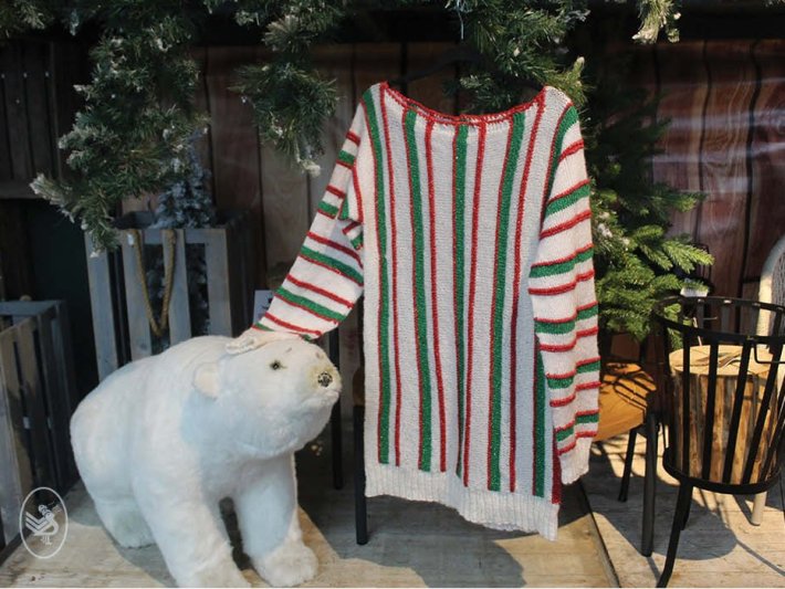 Whether you wear this festive sweater to an ugly Christmas sweater party, while decorating the tree, or during Christmas dinner, you’ll be sure to shine! The sweater is knitted with Durable Mohair and Durable Glam, giving it the perfect touch of holiday sparkle!