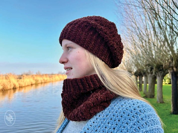 Deze gehaakte muts en bijpassende col zijn gemaakt van het heerlijk zachte Durable Velvet garen, dat niet alleen comfortabel aanvoelt maar je ook prettig warm houdt op koude dagen. De set is uitgevoerd in de kleur donkerbruin (385 Coffee), wat zorgt voor een stijlvolle en tijdloze uitstraling die eenvoudig te combineren is met elke winterjas. Of je nu een frisse wandeling maakt of de stad in gaat, met deze muts en col blijf je heerlijk warm én zie je er modieus uit. Tip: geschikt voor zowel beginners als gevorderden.
