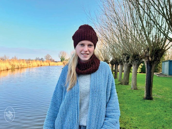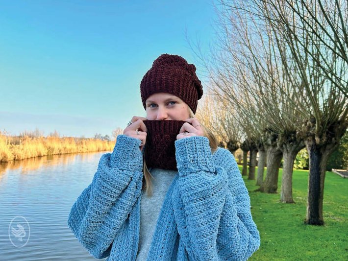 This crocheted hat and matching cowl are made from wonderfully soft Durable Velvet yarn, which not only feels comfortable but also keeps you pleasantly warm on cold days. The set is worked in a dark brown shade (385 Coffee), giving it a stylish and timeless look that pairs effortlessly with any winter coat. Whether you’re going for a brisk walk or heading into town, this hat and cowl will keep you warm while looking fashionable.